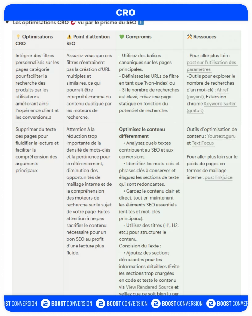 Un doc qui commente des optimisations CRO au prisme du SEO