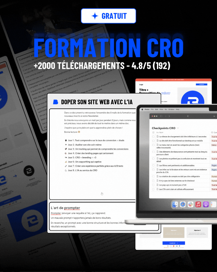 • Bonus : la check-list CRO : Accéde à notre check-list CRO totalement gratuitement pour optimiser chaque pixel de ton site.