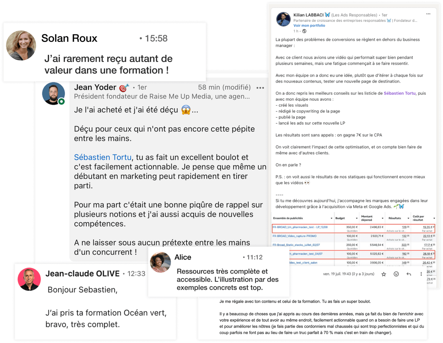 Il n’y a pas eu de meilleur moment pour mettre en place la méthode Océan Vert ! À partir du moment où vous faites de l’acquisition payante, si vous n’utilisez pas de landing pages, vous perdez bêtement des conversions. Cela revient à jeter de l’argent par les fenêtres. Plus tôt vous mettrez en place une stratégie de landing pages optimisée, plus vous pourrez scaler fortement pour écraser tous vos concurrents.