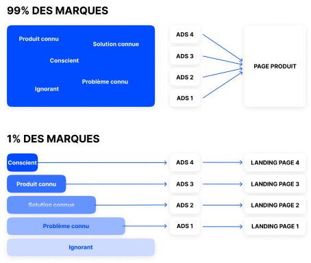 99 % des marques qui dépensent de l’argent sur des plateformes d’acquisition comme Meta ou Google renvoient leur trafic directement sur des pages produits.